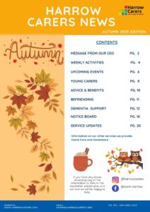 The Harrow Carers News Bulletin is produced every couple of months and contains all of the latest updates to help keep you informed about our work and upcoming activities.